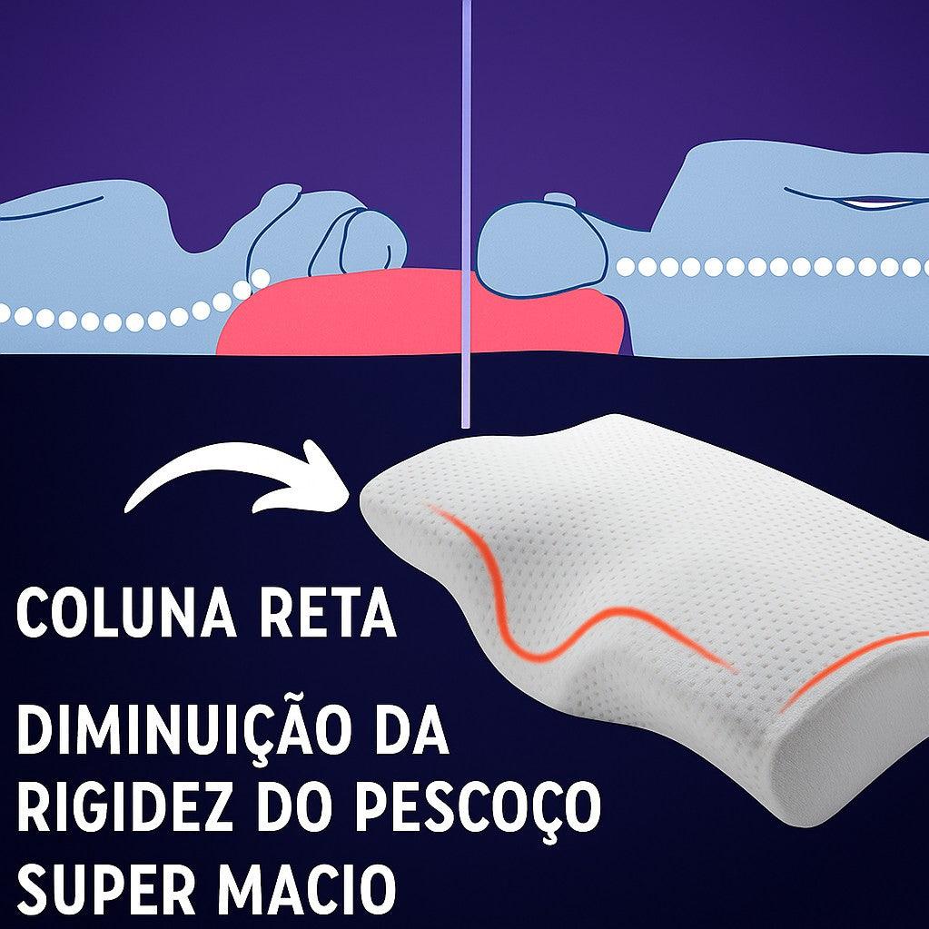 Com design ergonômico em formato de borboleta, espuma de memória e canais de ventilação, ele proporciona o encaixe perfeito da cabeça e pescoço, promovendo relaxamento muscular, prevenção de torcicolos e redução de roncos.